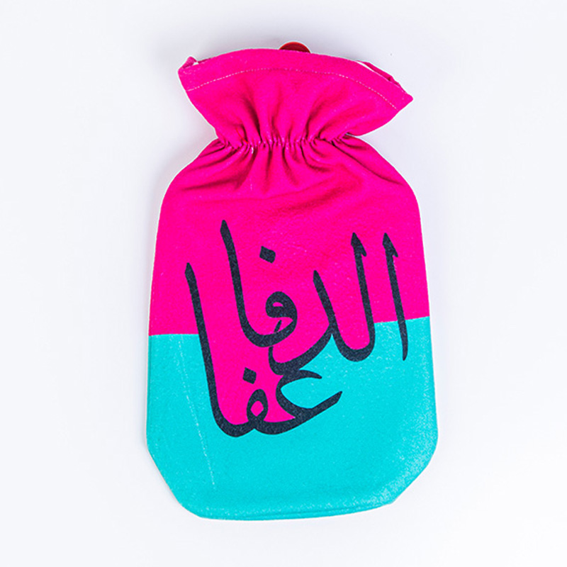 قربة ماء مع غطاء قماشي مزين بكلمة دفا باللون الوردي والأزرق. الحجم : 1700 مل.