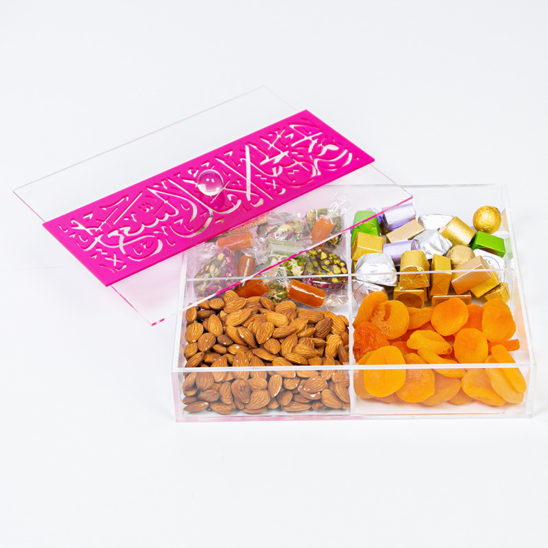 صندوق بلكسي مع غطاء بلكسي مزين بالخط العربي. الحجم: 30سم*30سم*6سم.