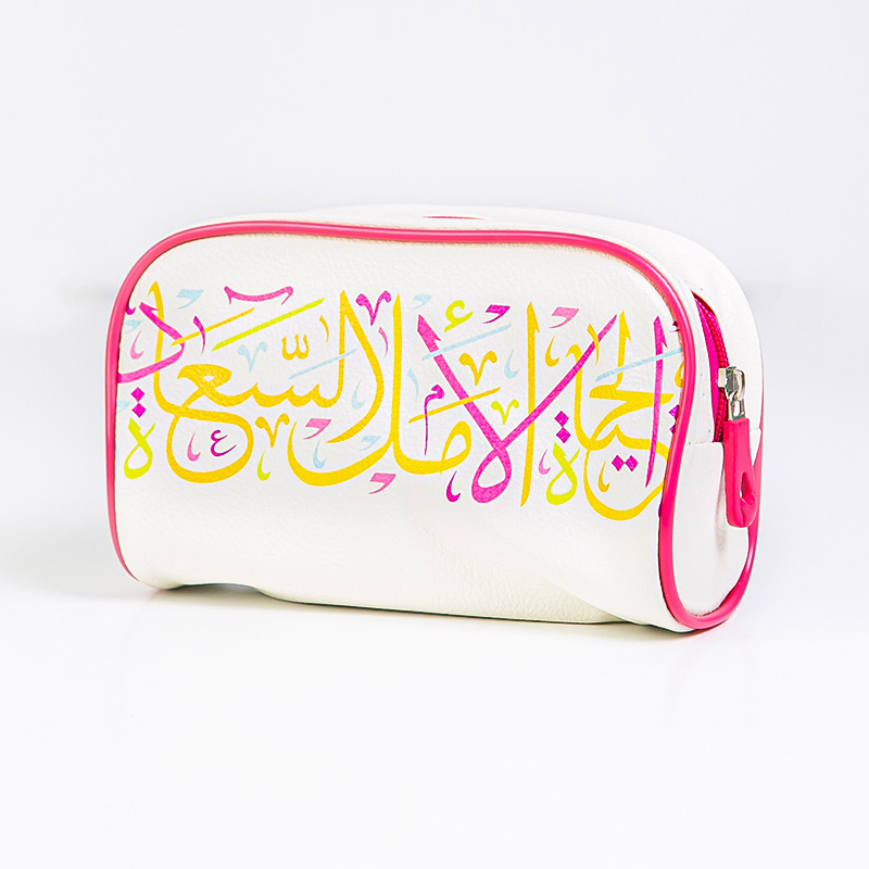 حقيبة متعددة الاستعمالات ومزينة بالخط العربي. الحجم: 20سم * 13 سم.