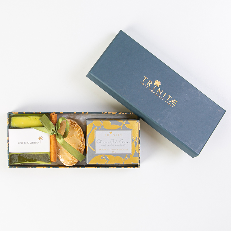 صابون زيت الزيتون من ثلاث قطع.الحجم: 150 غم لكل صابونة.