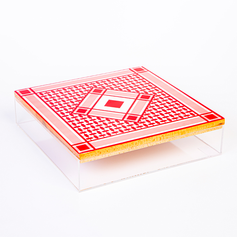 Plexi box with a wooden top cover designed with the traditional “Hatta” red & white pattern.